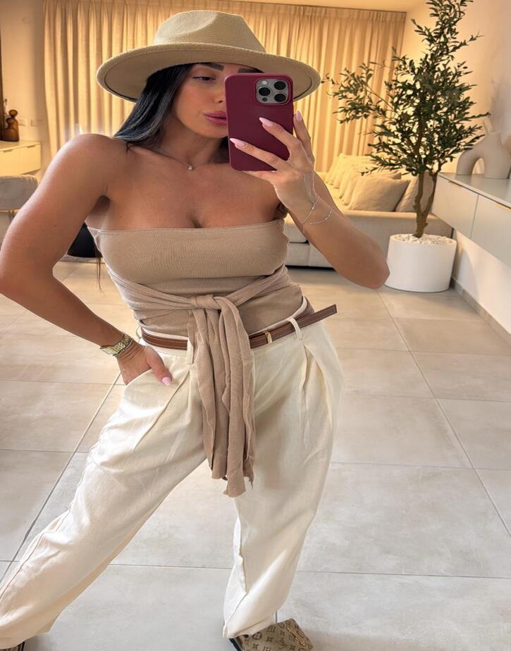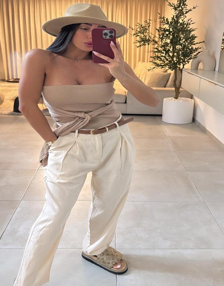 מכנס פשתן שילוב חגורה